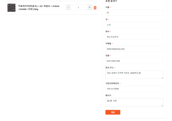 위노아코리아 온라인샵 이용 가이드 - 견적문의편