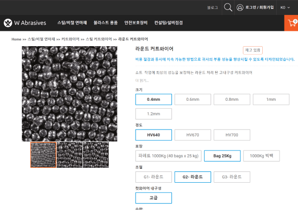 ① 제품의 옵션을 선택한 후 "견적에 추가" 버튼을 클릭해합니다.
