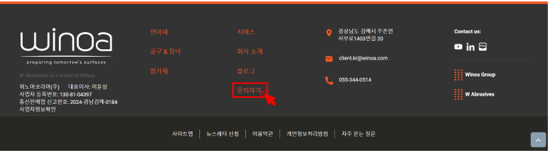 그럼 홈페이지 제일 하단에 있는 ‘문의하기’를 통해 문의 사항을 남겨주세요.